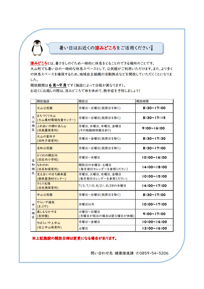 暑い日は一時的な休息場所「涼みどころ」をご活用ください。