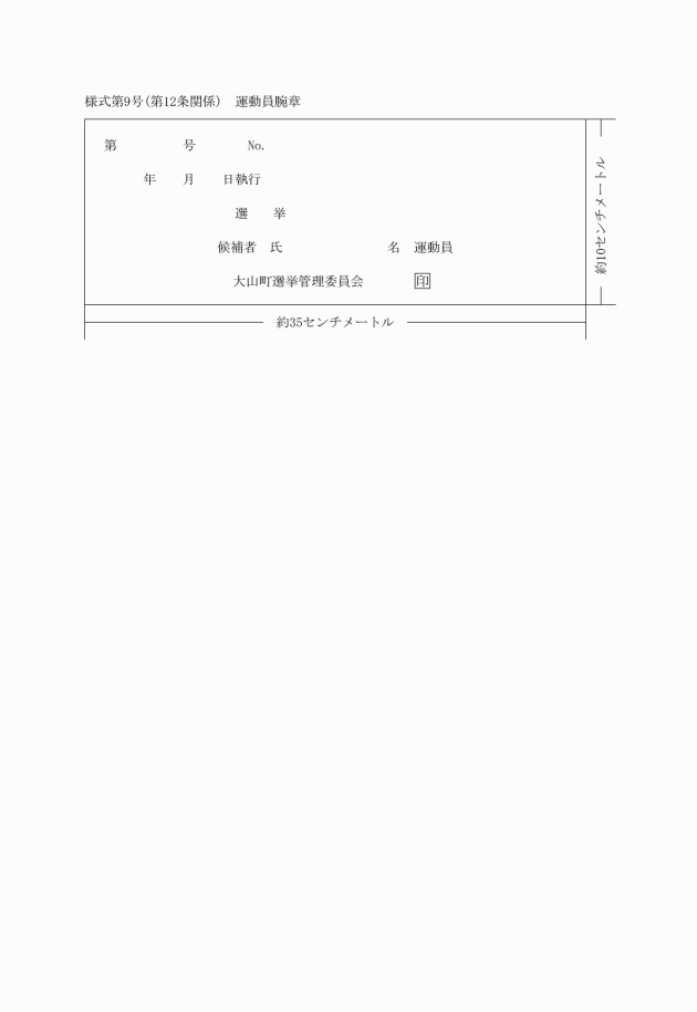 2 法第164条の7第2項の規定により、選挙運動に従事する者が着用する腕章は、運動員腕章(様式第9号)によるものとする。