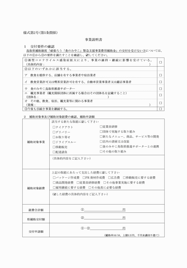 ウ 鳥取県産農林水産物を活用した取組又は雇用継続に資する取組等を行うこと